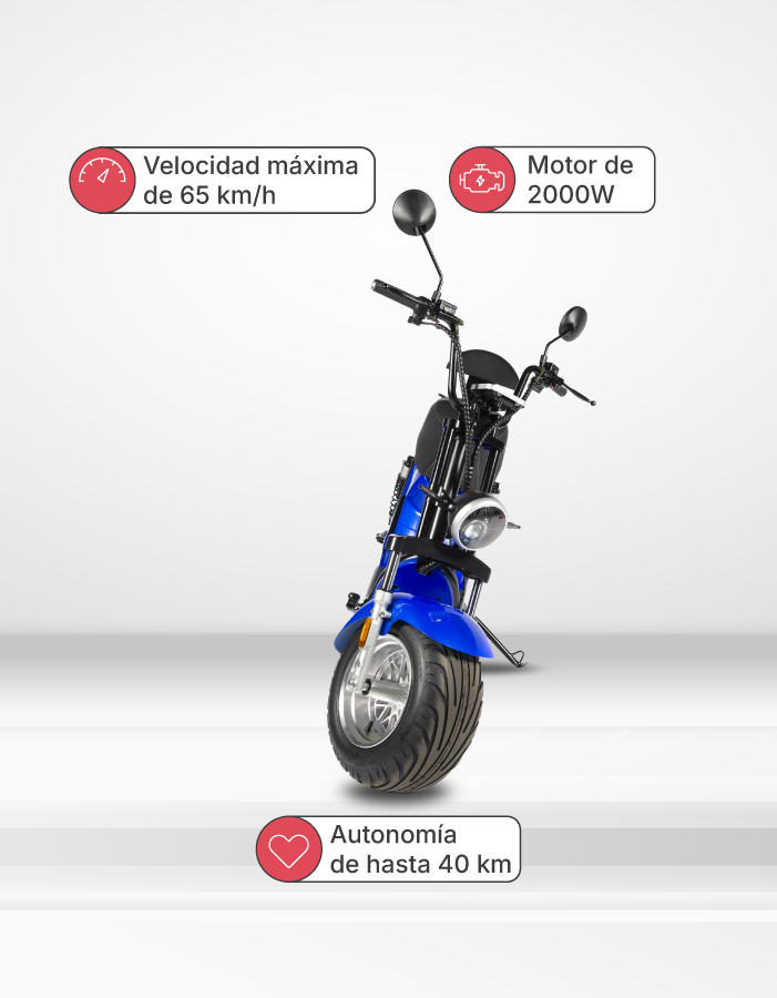 Diseñada para quienes buscan una experiencia de conducción ágil y moderna, la Spy Racing Z6 combina un potente motor de 2000W con una batería de litio extraíble que ofrece hasta 40 km de autonomía.